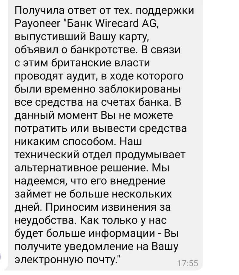 А ведь Payoneer не единственные в такой ситуации, Wirecard многим карты выпускал.